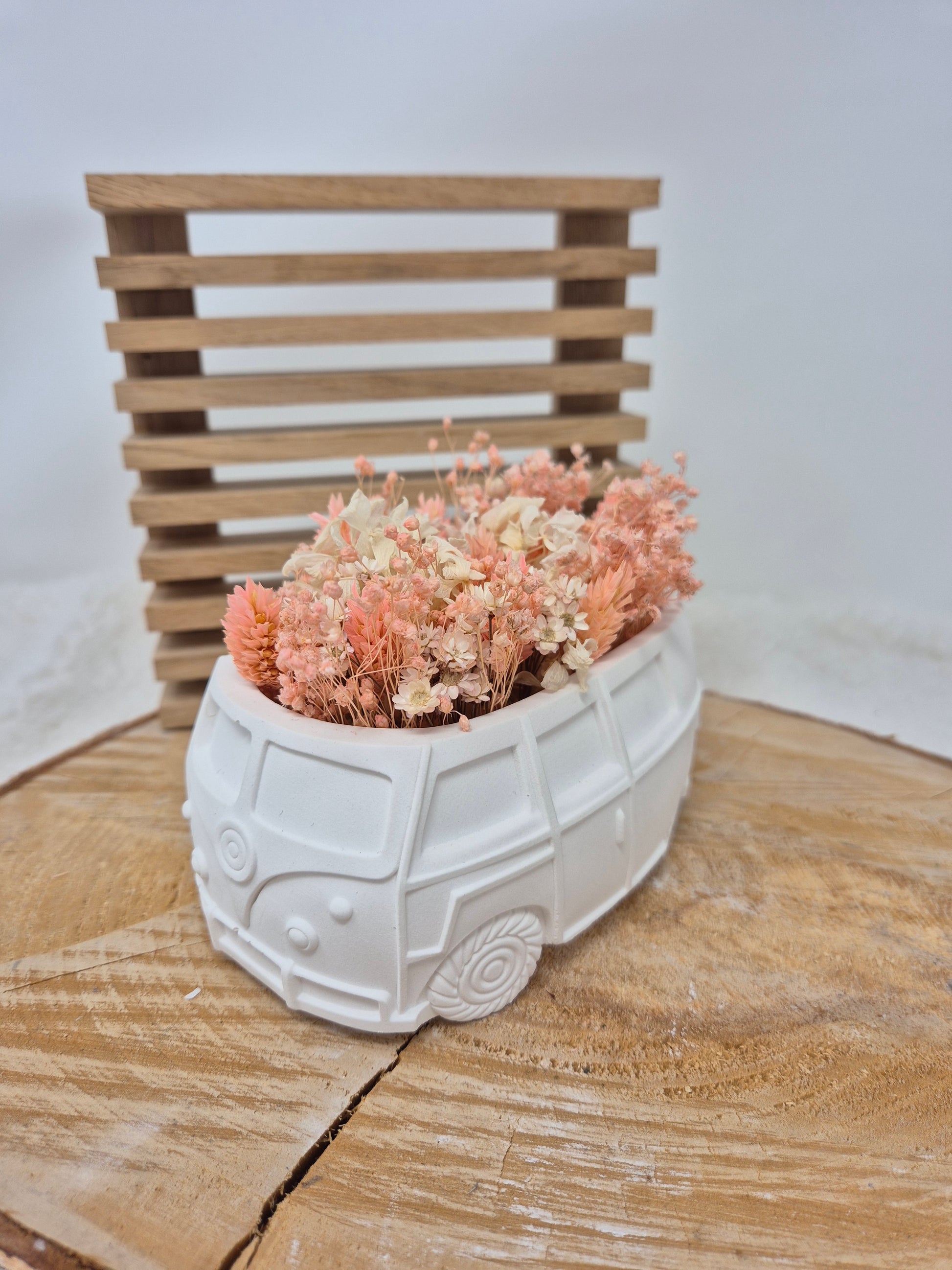 Bulli / Keraflott / Deko / Fahrzeug / Camper / Trockenblumen / Raysin